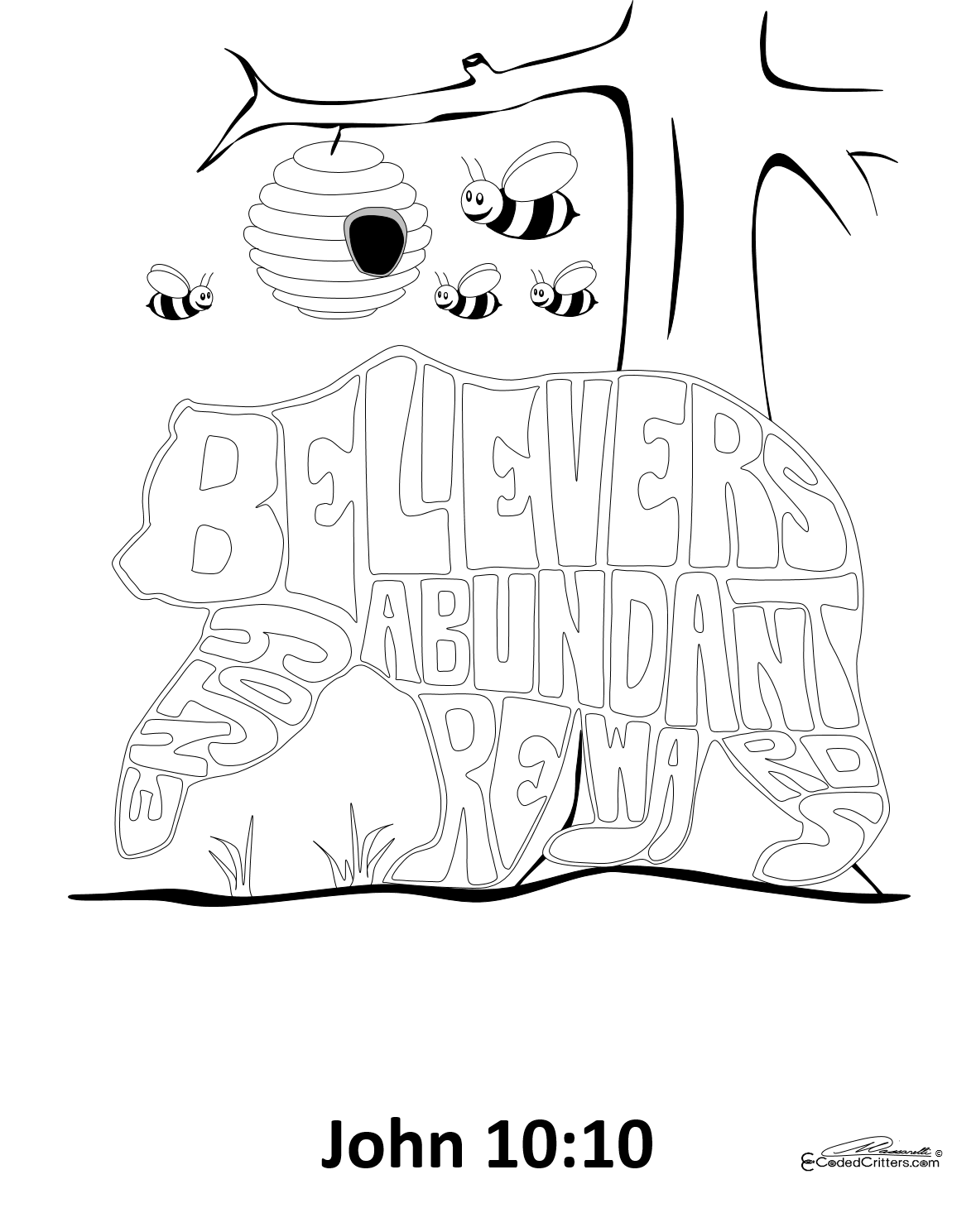 Coded Critters are paraphrased Bible verses illustrated in the form of God's little critters. The name of the critter the the acronym for the paraphrased Bible verse.